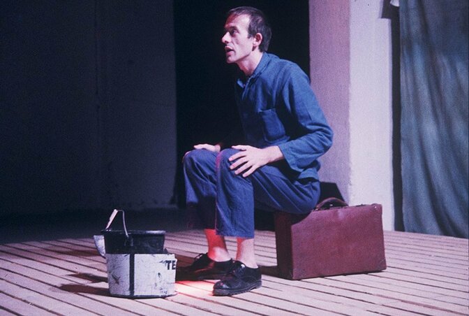 (Jean François Jacq sur scène dans le nuage en pantalon de Maïakovski en 1995 - collection personnelle Jean François Jacq)