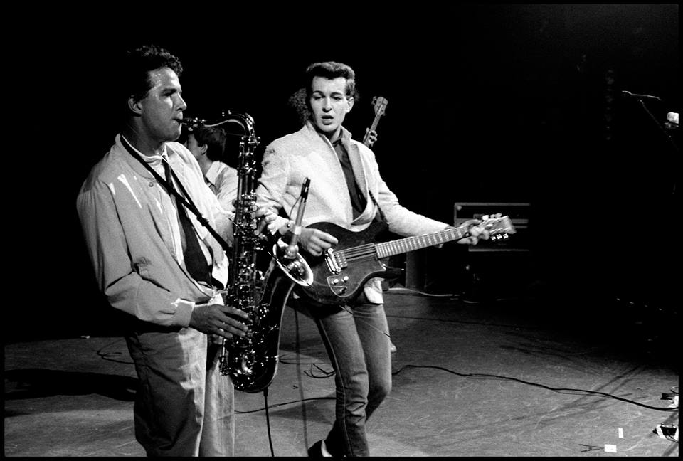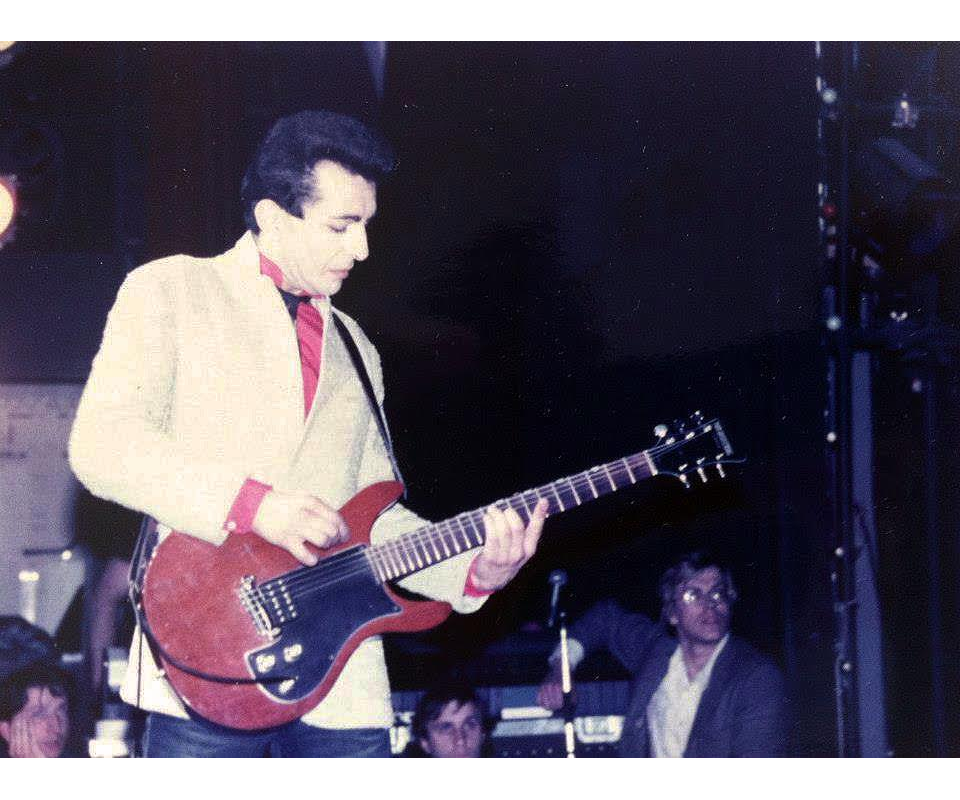 (Pierre Goddard sur scène avec Suicide Roméo en 1980, au premier plan Daniel Brunetti ((Stinky toys et Suicide Roméo) - Droit Réservé)