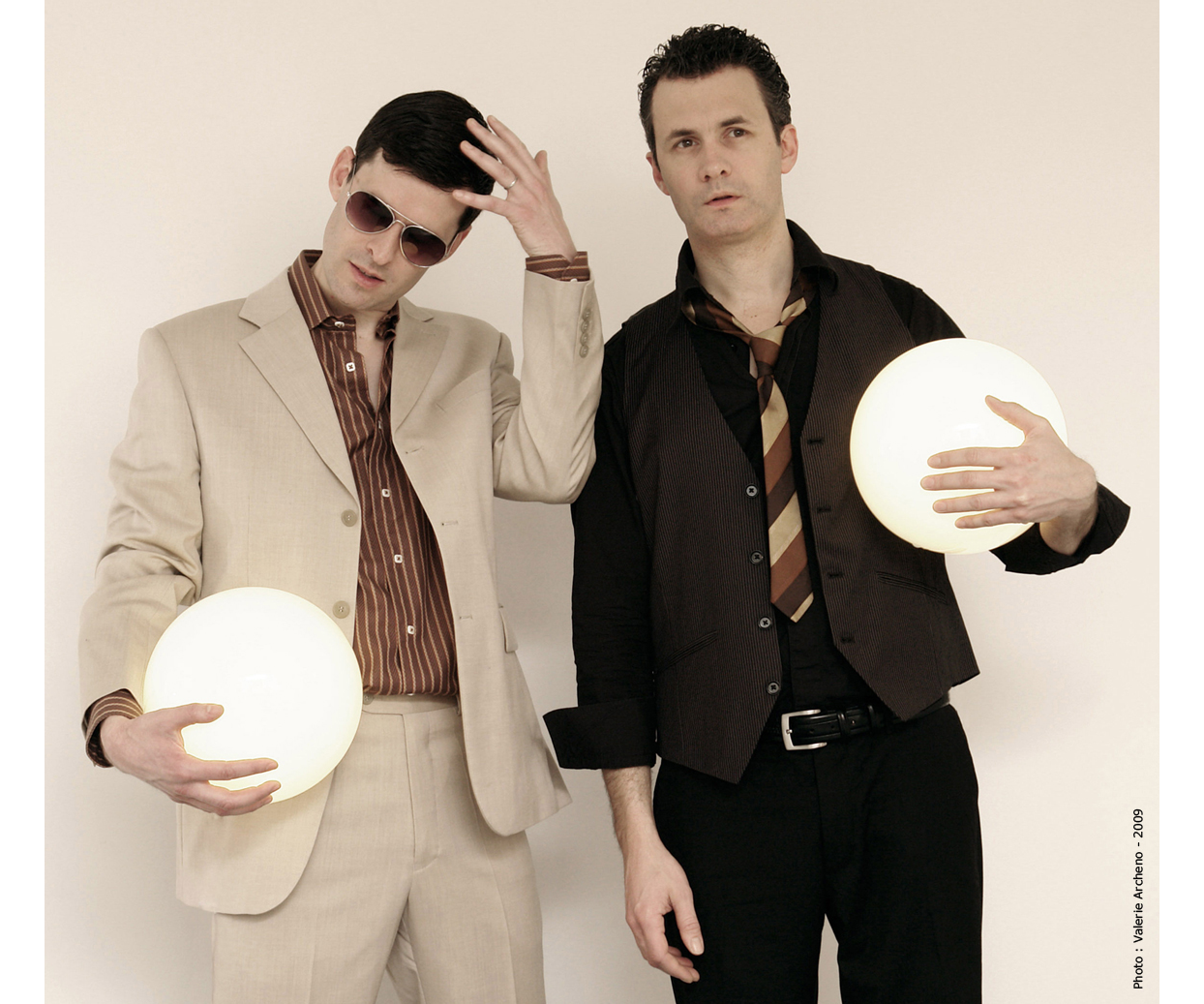 Pierre : En 2 000, au moment où je suis parti au conservatoire et Thomas (son frère, autre membre du duo et ancien Alaf Lamout ? Ndlr) est allé faire « l’American School of modern music ». Il a d’abord commencé à faire des trucs en solo et puis il est venu me voir pour que l’on continue à travailler ensemble. On a fait d’abord un premier concert au théâtre Du Gymnase sous notre premier nom : « Thomas et Pierre David » (rires), ce qui a bien fait rigoler tout le monde. C’était l’époque où Thomas jouait surtout avec des compagnies de théâtre. Bref on a trouvé rapidement ce nom, surtout que l’un des poèmes que l’on chantait était « Ici et lui ». Cela nous résumait bien : on est deux et puis il y a un côté marketing : ça fait marque de coiffeur (rires), j’adore ! En plus ça rappelle « ici et maintenant » une expression qui nous va bien …