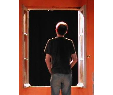 (Jean François Jacq sur scène dans le nuage en pantalon de Maïakovski en 1995 - collection personnelle Jean François Jacq)