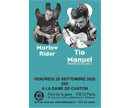 22 septembre 2020, par Franco OnwebCela aurait pu être une des plus belles affiches de la rentrée mais avec la situation sanitaire cela va être LE concert de la rentrée : Tony Marlow et son nouveau projet Marlow Rider partagera la scène avec Tio Manuel et son blues splendide. Petit rappel pour deux artistes que nous aimons beaucoup !