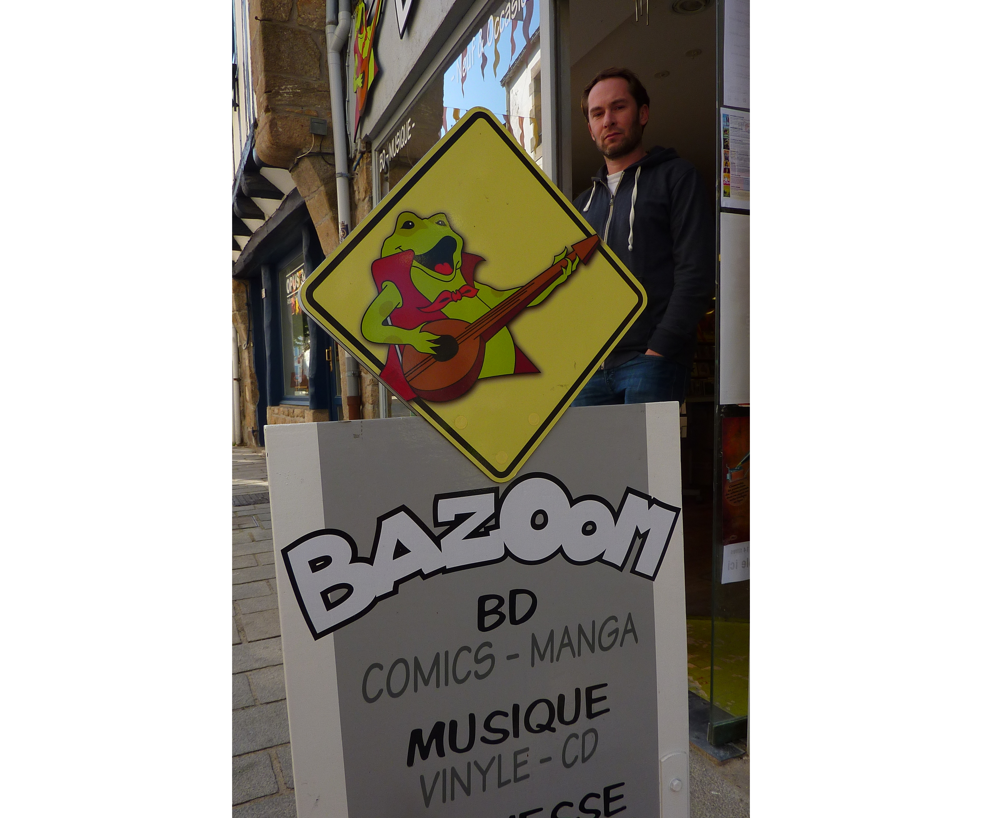 Depuis 2010, ce passionné de musique (et de BD) a posé son sac en Bretagne où il prodigue ses conseils à tous les amoureux de musique du coin. Vis ma vie de disquaire acte 1, bienvenue chez Bazoom rue du Belzic à Auray !