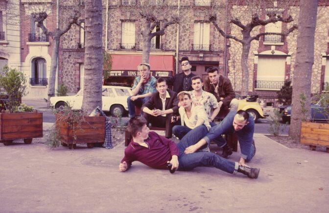 (Devant le bol d’Or à Enghiein place Verdun 1984, devant Thierry Pelletier et Alain Relou devant, qui lui prend les couilles. Didier Wampas derrière, assis sur le banc : Francis Wampas, Michel Poupon, Serdar Gunduz, Olivier Lange et Patrick Williams ).