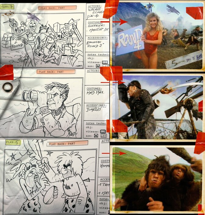 Des décors façon théâtre avec de la machinerie faite maison, des animaux en polystyrène, ou un laboratoire futuriste à base de pièces de télé, hublot de machine a laver, avec un robot grandeur nature. Que de la récup. J’avais un copain forain qui me prêtait pas mal de pièces de manèges anciens, avion fusée, moto, camion de pompier… Pour Fox kids, ça humanisait la chaîne par rapport à Disney qui faisait déjà de l’habillage 3D.