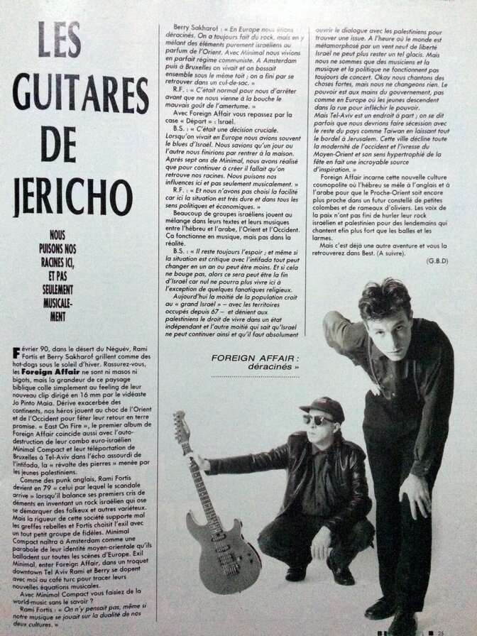 De plus, je rencontre le journaliste Gérard Bar David dans un bar à Tel Aviv, par un pur hasard, qui fait un article sur le rock palestinien. À mon retour, je découvre qu’il nous a consacré une page dans Best…