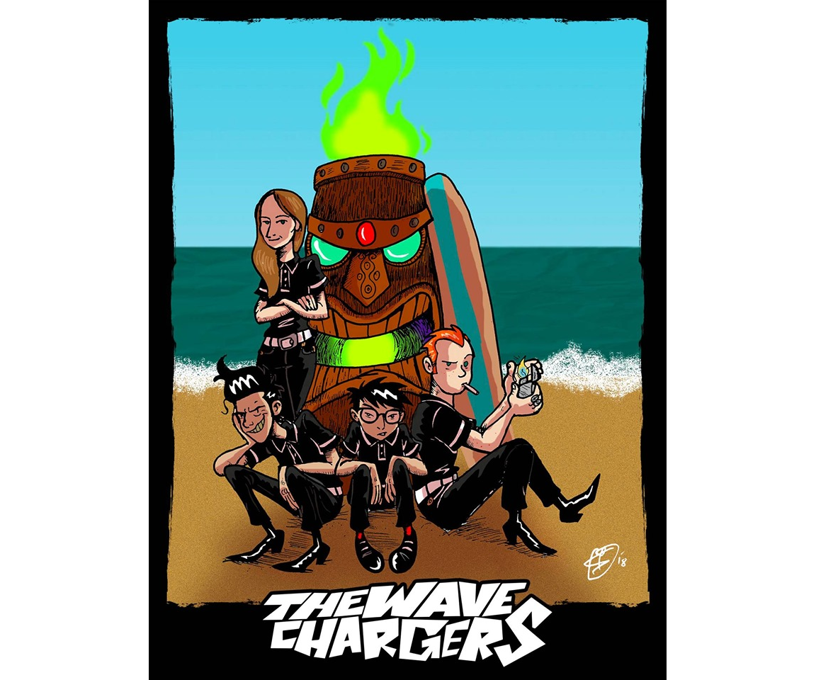 Francis (guitariste du groupe) : Le groupe a commencé il y a 4 ans. Je jouais avec Claude, le batteur des Wave Chargers , dans les Kitschenette’s . Je voulais faire un groupe de surf music depuis assez longtemps. On a eu un break de six mois avec les Kitschenette’s et j’ai motivé Claude, qui était assez chaud. Pour les autres membres j’ai lancé une bouteille à la mer auprès d’un petit réseau trié sur le volet et on a rencontré Anne, notre première guitariste, qui nous a quittée il y a un an. Notre bassiste Samy, je l’ai rencontré à un concert des Spadassins à l’Espace B.