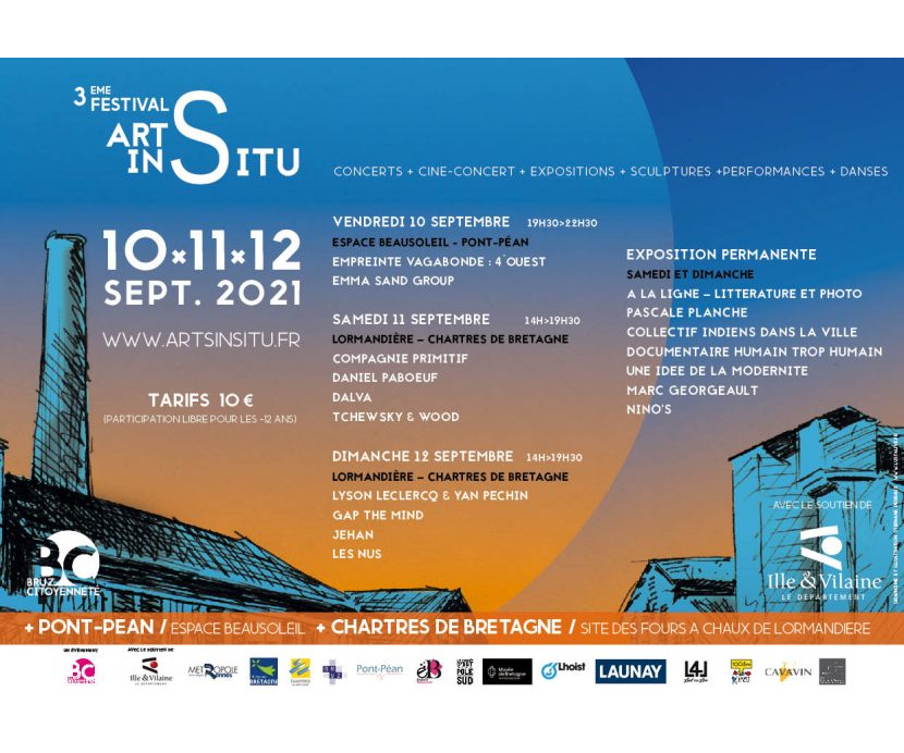 En 2016, l’association « Bruz Citoyenneté » décide d’investir deux lieux emblématiques de la révolution industrielle : les fours à Chaux de Lormandiére à Chartre de Bretagne et les mines du Pont Péan. Deux lieux où des artistes vont s’investir pendant trois jours.
