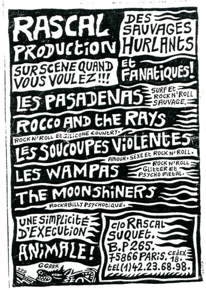 Avec ce fanzine on s’est mis à parler d’une scène qu’on ne pouvait pas voir à Paris, une scène londonienne. J’avais sympathisé avec le groupe Sting Rays à Londres. J’avais vu leur premier concert et cela m’avait plu. Six mois après, je les ai fait jouer à Paris au Gibus avec les Coronados. L’année suivante en 1983 avec ma copine Sara Jane R., on a organisé la première tournée des Météors en France. Il y avait une dizaine de dates dans toute la France et trois dates à Paris dont une à Vincennes au Théâtre Sorano. On s’était rendu compte qu’une partie du public qui aimait la musique des Météors, était ce qu’on pourrait appeler la Raya. Un public qu’on retrouvait aux concerts de la Souris Déglingué des Wampas et aussi dans les Squats. Les Météors faisaient venir des punks, des skins, des Teds, des Cats… un vrai melting pot. Le Gibus ne voulait plus de ce public, donc on avait organisé ce concert à Vincennes pour ce public. Il y a eu les deux soirs de suite…au Gibus ! Comme tout le monde avait payé sa place, ils ont laissé entrer tout le monde !