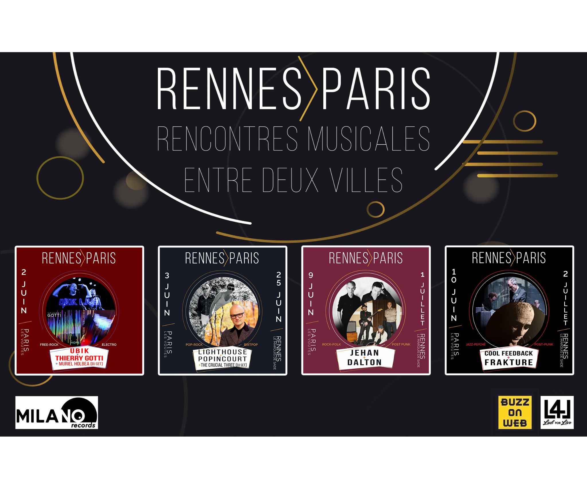 A son tour, Rennes accueillera le 25 juin au Marquis de Sade Popincourt et Lighthouse, le 1er Juillet Jehan et Dalton et enfin le 2 Juillet the Cool Feedback et Frakture qui retrouvera enfin son public rennais pour la première fois depuis six ans.