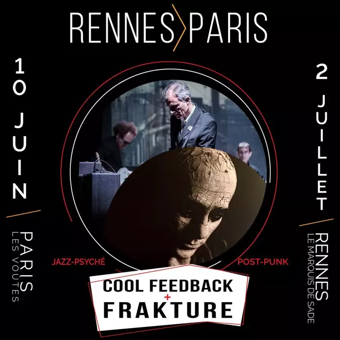 Le 10 Juin, clôture des concerts parisiens avec the Cool Feedback du guitariste Grégoire Garrigues ayant dans ses rangs F.Robert Lloyd, Gilbert Artman (Urban Sax, Catalogue et Lard Free) proposera un set de jazz free form de haute tenue. Et enfin, les mythiques Frakture qui joueront pour la première fois à Paris. Frakture débute en 1977 autour du bassiste chanteur Sergeï Papail (ex Marquis de Sade et Marc Seberg) et du guitariste Pascal Karels (ex Marc Seberg) et s’est reformé il y a quelques années, c’est l’une des dernières formations de la mythique scène rennaise de la fin des années 70 et du début des années 80 en activité.