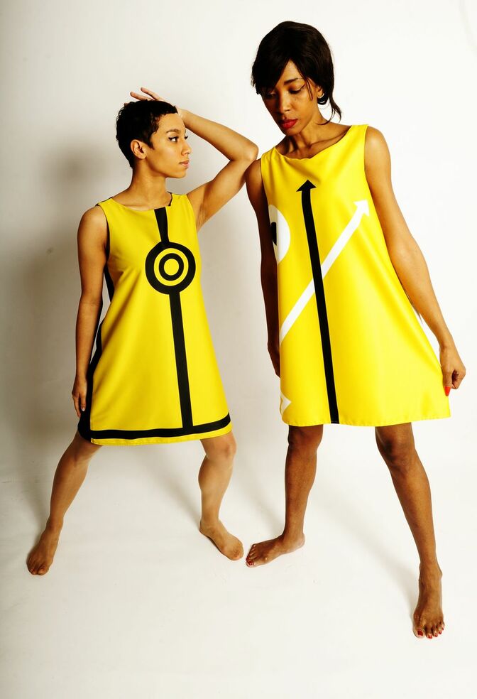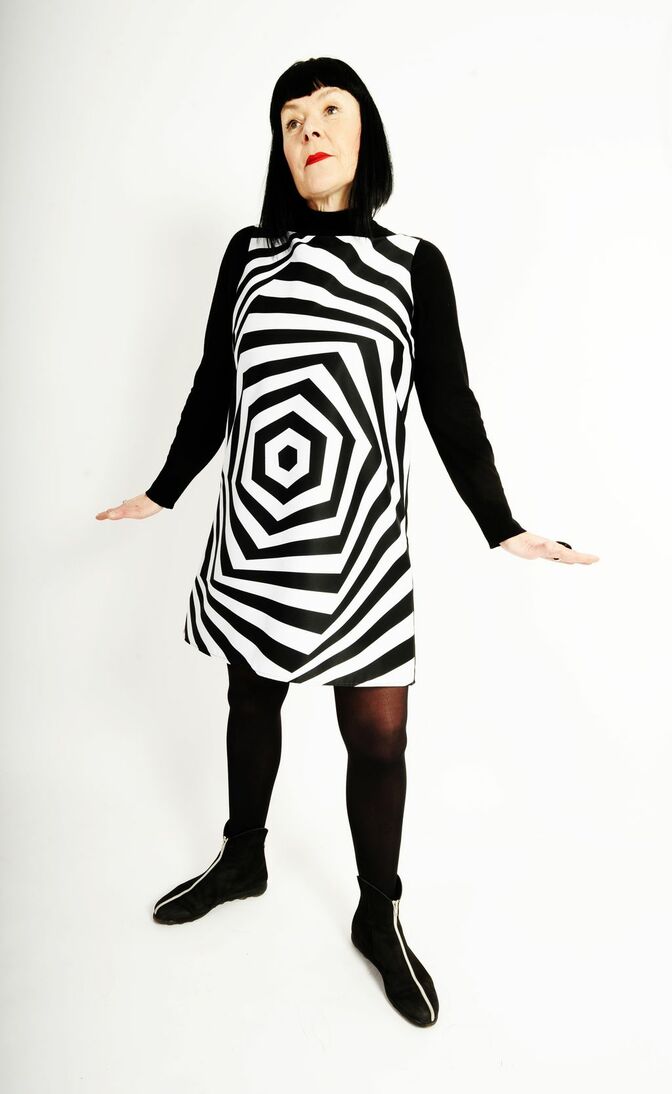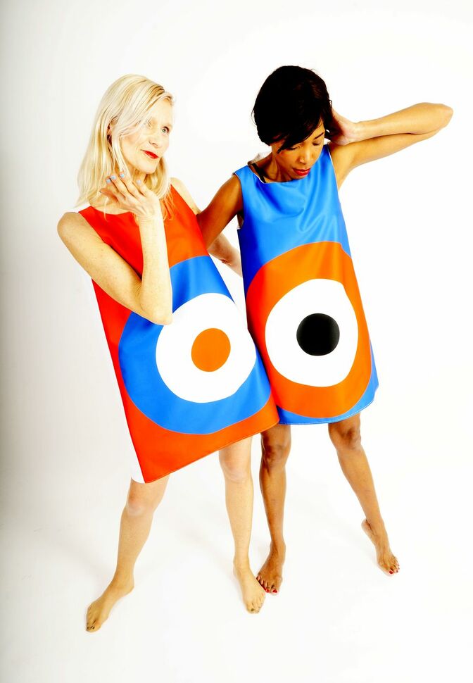 Ma culture est très estampillée sixties et plus particulièrement Swinging London parce que je trouve qu’il y avait une richesse culturelle et artistique assez dingue teintée d’audace à cette époque. Il y avait une vitalité culturelle, une mode audacieuse et colorée, une richesse musicale et artistique importante… Tout ce que j’aime. Je chine beaucoup d’objets de cette époque. Je suis née en 1966 et c’était des années fortes avec, notamment, la fameuse robe de Saint-Laurent inspirée du tableau de Piet Mondrian. Ma démarche s’inspire de son audace : imaginer des robes tableaux. Je me nourris aussi de Pop Art. Je m’intéresse aussi à des courants artistiques plus récents. J’aime beaucoup l’art optique dans ce qu’il provoque visuellement avec le spectateur : je veux que mes créations ne laissent pas indifférents et qu’elles se voient. On a le droit de ne pas aimer ce que je fais mais ça ne laisse personne indifférent. Ca (d)étonne. Je veux marquer les gens avec mes œuvres ou dans mes collaborations avec d’autres artistes. Je veux montrer que l’art a vocation à sortir des galeries et des musées. Je m’adresse autant à des personnes qui ont ces références qu’à celles qui les ont moins mais qui sont séduites, sans forcément avoir la même culture que la mienne.