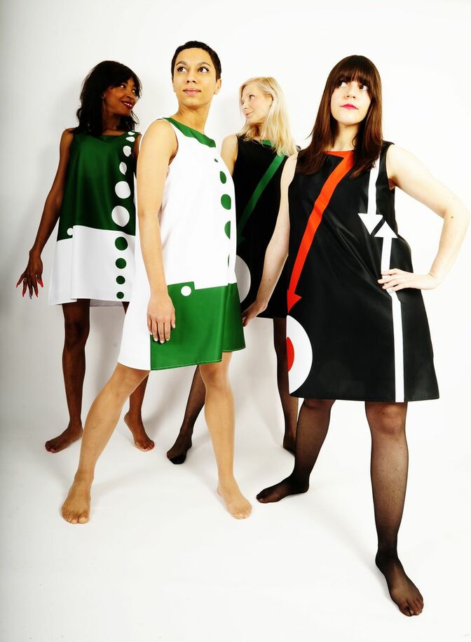 J’ai acheté du matériel électrique professionnel et j’ai réussi à démontrer que l’on pouvait imprimer dans la masse des interrupteurs pour en faire de vrais tableaux de décoration intérieure en sus de leur fonction première. J’ai fait pas mal de salons avec mes interrupteurs (dont les puces du Design), repérée sur mon innovation, même si le marché n’était pas prêt, j’étais sans doute un peu avant-gardiste. Pour ces salons je m’habillais comme je le voulais avec mes créations qui me représentaient et me donnaient une belle visibilité, et c’est comme ça que j’ai commencé. J’avais déjà ma petite robe Trapèze graphique - mon produit signature. J’ai posté sur les réseaux sociaux et à ma grande surprise cela a généré de l’enthousiasme.