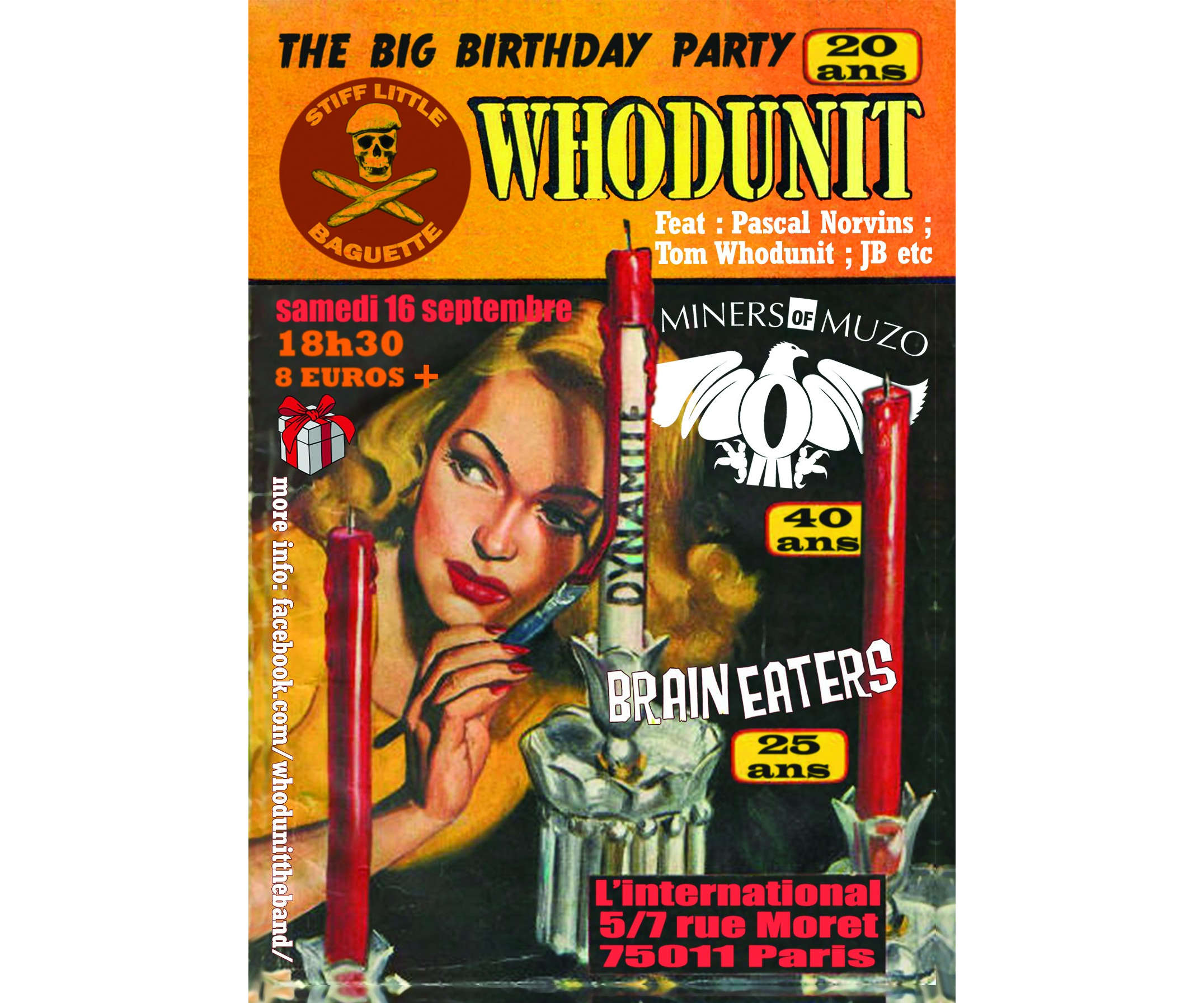 Luc : Dignement,on joue le 16 Septembre à l’International avec nos potes des Brain Eaters et des Miners of Muzo, on a prévu pas mal de surprises, tous les anciens membres interviendront à tour de rôle sur scène, il y aura un petit jeu à l’entrée et tout le monde repartira avec un cadeau, on réserve aussi un petit plus à ceux qui porteront un de nos t-shirts..et bien entendu on sera là dès l’ouverture dans l’après-midi pour trinquer, et il y aura une after après le concert.