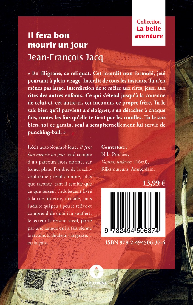 Je me suis réveillé en sursaut une nuit, et le titre était là. Je me le suis pris en pleine face. J’ai pensé qu’un tel titre était destiné à mes parents, seul et unique moyen, il fera bon, de trouver enfin quelque peu la paix. Et là, une fois publié, j’ai senti que c’est moi qui me trouvais alors au pied du mur. Écrire, et ce n’est pas nouveau, chaque titre de mes récits en atteste, me projette inexorablement en plein cœur de la vie. Mourir un jour je ne peux qu’espérer que ce jour-là il fera bon. Que j’aurai réglé tout du moins l’essentiel via mon écriture.