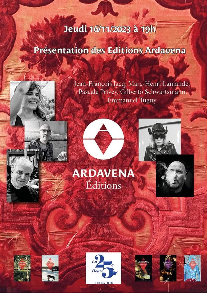 Jeudi 16 novembre – Événement éditions Ardavena. Rencontre et dédicace : librairie la 25e heure, 8 place du Général Beuret, Paris 15e, à 19h00.