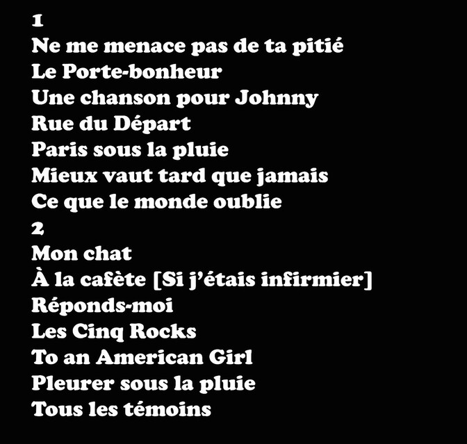 JWT : Nous l’avons déjà fait, deux ou trois fois, pour quelques titres, « Ne dis rien », « Chez-moi à Paris » (écrit pour Marie France en 1981), « Mon chat », « Les Témoins »… Nous serons probablement amenés à le refaire, et peut-être allonger cette séquence.
