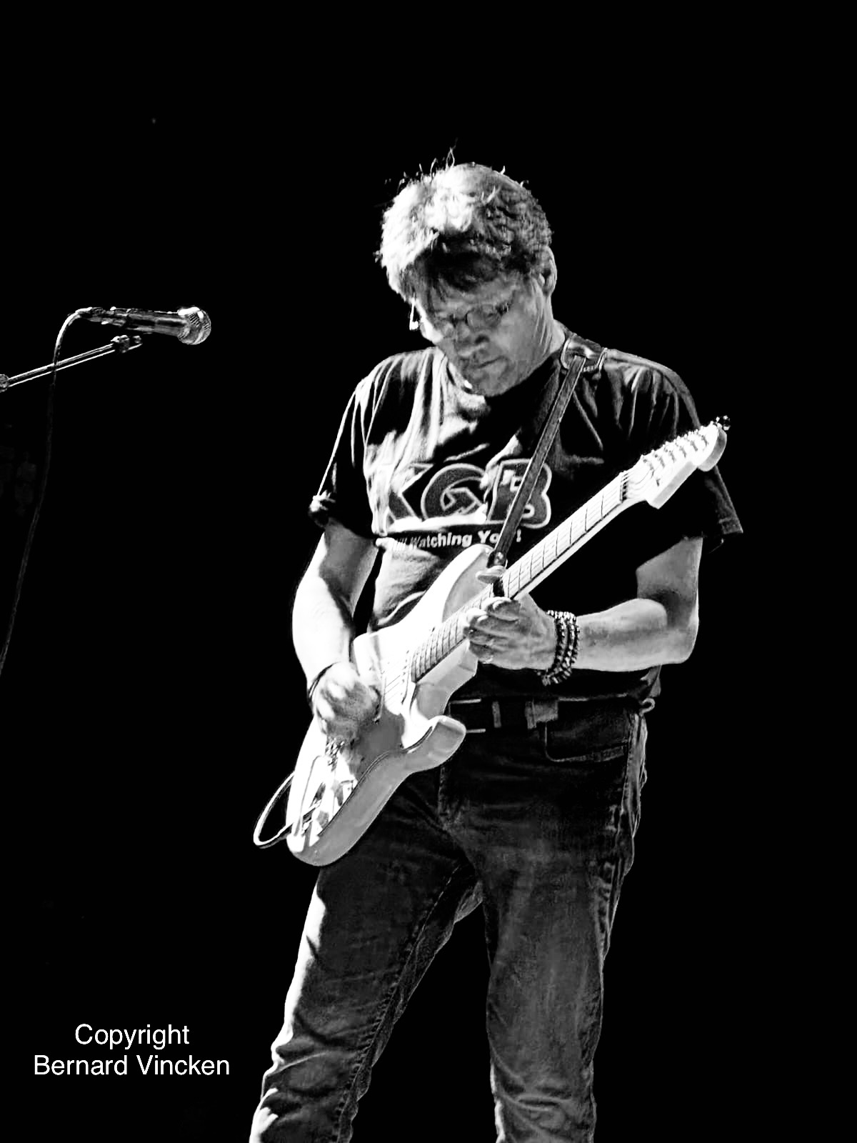 Ph : C’est, hélas ! le décès de Frank (avec lequel j’entretenais de temps en temps une correspondance via Messenger) qui m’a fait rencontrer toute cette scène rennaise. Je n’avais pas pu me rendre (j’habite à Dijon) au concert hommage à Philippe Pascal ; je m’étais dit qu’il ne fallait pas louper celui donné en l’honneur de Frank. Dès que Dargelos a annoncé l’évènement sur Facebook, j’ai pris mon billet. Le hasard a voulu qu’en me baladant dans Rennes, en attendant l’heure du concert, je veuille voir où se trouvait l’UBU et, lorsque je suis arrivé devant la salle, c’était la pause et tous les musiciens étaient dehors. Alors je suis allé les saluer. Pierre Thomas m’a invité à entrer pour voir les balances et… il ne me restait plus qu’à prendre les contacts et expliquer mon projet.